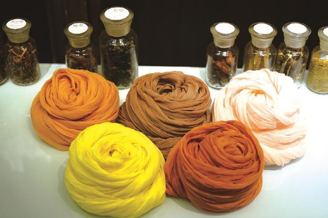 而與大多數(shù)傳統(tǒng)色彩研究者不同的是,曾啟雄極為重視實(shí)驗(yàn)考證。作為一位技藝精湛的染色家,其論著里介紹傳統(tǒng)染色的文本內(nèi)容及圖片,都是他親歷親為、反復(fù)實(shí)驗(yàn)后的成果,這也是該書(shū)最為精彩之處。在染色實(shí)驗(yàn)過(guò)程中,除了復(fù)原了傳統(tǒng)顏色的本來(lái)面貌外,作者還做出如下貢獻(xiàn):首先,通過(guò)大量實(shí)驗(yàn)印證了古籍記載的真?zhèn)?,并糾正了其中一些不實(shí)之處。比如,他通過(guò)在柘木里添加明礬、高溫染色后的結(jié)果,顛覆了以往認(rèn)為唐代帝王穿用的“柘黃”袍服是暗淡赭黃色的普遍認(rèn)知,印證其應(yīng)為類(lèi)似明清時(shí)代帝王使用的明黃色。其次,使用不少篇幅介紹了不同的染料、媒介物等因素對(duì)于染色效果等的制約作用。以石榴皮作為染材為例,當(dāng)它與不同媒染劑,如明礬、鐵等進(jìn)行染色時(shí),則會(huì)形成由黃色到黑褐色的不同顏色。即使采用相同的染法,因棉麻絲綢等介質(zhì)迥異,也會(huì)染出不同顏色等。最后,該書(shū)對(duì)于各種染料特點(diǎn)、工藝程序、顏色效果等的表述,較其他相關(guān)論著也更加纖悉無(wú)遺和引人入勝,如關(guān)于紫膠蟲(chóng)的染色工序的詳盡介紹等,讓讀者有一種身臨其境、意欲參與的感受。