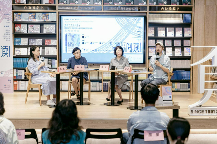 分享會(huì)上,閱讀公益組織“愛(ài)閱公益基金會(huì)”的李文、兒童有聲書(shū)品牌“老墨家族”的“墨叔叔”、學(xué)習(xí)困難關(guān)愛(ài)協(xié)會(huì)“學(xué)愛(ài)會(huì)”許倩、讀困家長(zhǎng)社群“飛米力”(本書(shū)翻譯團(tuán)隊(duì))主理人鄭楓,四位嘉賓,帶著各自不同的成長(zhǎng)和行業(yè)經(jīng)歷背景,圍繞“不一樣的孩子,不一樣的閱讀”的主題展開(kāi)交流,從不同的角度表達(dá)了他們對(duì)于閱讀障礙的關(guān)切。