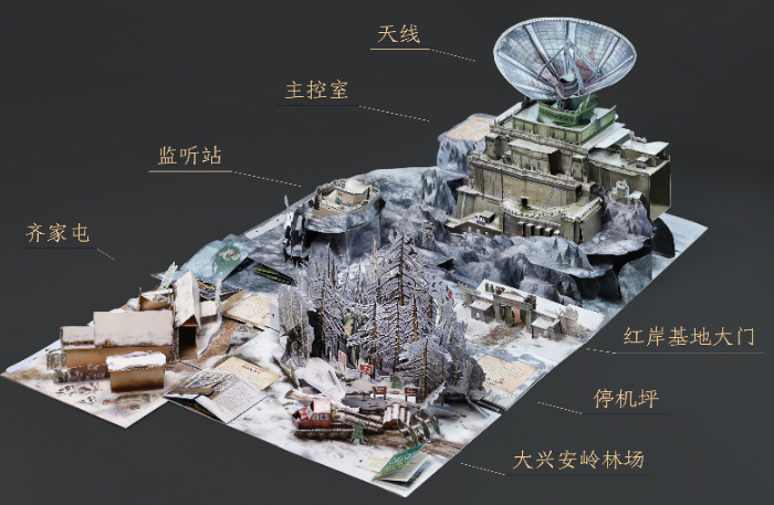 如果說(shuō)《三體》是關(guān)于宇宙最狂野的想象,那《三體立體書(shū) 紅岸基地》就是將這份想象轉(zhuǎn)化為了可觸摸、可視化的閱讀體驗(yàn)。這本書(shū)采用全景展開(kāi)的裝幀方式,還原從大興安嶺林場(chǎng)、紅岸基地、到齊家屯的整個(gè)地圖,全書(shū)展開(kāi)后近1.5平方米,小立體頁(yè)和豐富有趣的互動(dòng)機(jī)關(guān)則暗藏細(xì)節(jié),使故事結(jié)構(gòu)更為完整。為了確保立體書(shū)最終呈現(xiàn)出來(lái)的效果,在做立體紙藝設(shè)計(jì)的時(shí)候,施鎮(zhèn)宇挑戰(zhàn)立體紙藝結(jié)構(gòu)畫(huà)幅極限,創(chuàng)新性采用二段式結(jié)構(gòu),搭建出約0.5米高的紅岸基地巨型天線,帶來(lái)震撼的閱讀體驗(yàn)。
