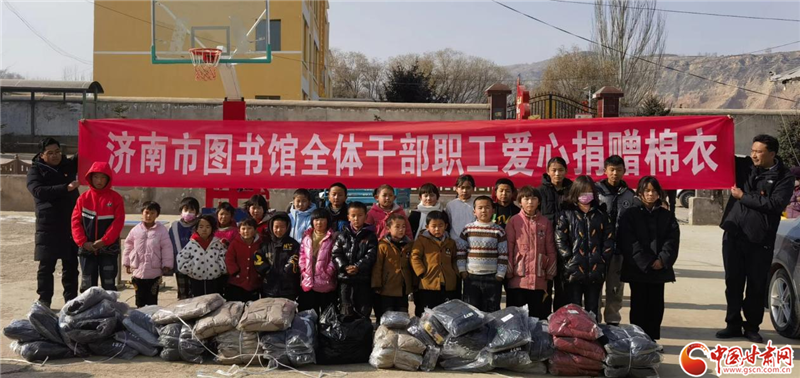濟(jì)南市圖書館為積石山縣滿陳家村小學(xué)捐獻(xiàn)愛(ài)心棉衣