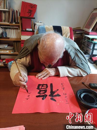 在家人拍攝的視頻中,馬識途面色紅潤,精神矍鑠,手握毛筆,伏案書“福”。窗臺上一支紅梅開得正艷,與玻璃窗上紅底黑字的福字相映成趣。書房顯眼處還掛著馬識途親筆所寫的“無愧無悔,我行我素”八個大字。