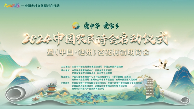 大地流彩,詩賦“三農(nóng)”。3月31日,“大地流彩—全國鄉(xiāng)村文化振興在行動”重點(diǎn)活動“愛中華愛家鄉(xiāng)”2024中國農(nóng)民詩會啟動儀式暨(中國·池州)杏花村清明詩會在安徽池州杏花村文化旅游區(qū)舉辦,主題為“春和景明詩出池州”。本次活動由農(nóng)業(yè)農(nóng)村部農(nóng)村社會事業(yè)促進(jìn)司、中國文聯(lián)國內(nèi)聯(lián)絡(luò)部主辦,中國農(nóng)業(yè)電影電視中心、安徽省農(nóng)業(yè)農(nóng)村廳、安徽省文學(xué)藝術(shù)界聯(lián)合會、池州市人民政府承辦。