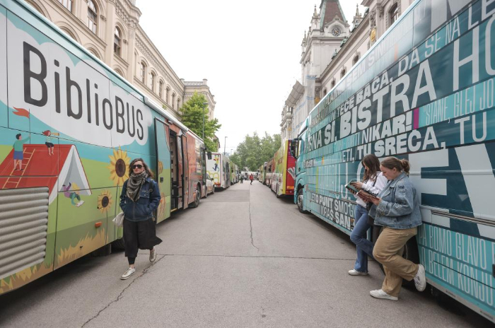 當(dāng)日,18輛裝備齊全的移動(dòng)圖書館車在盧布爾雅那國會(huì)廣場和維戈瓦街展出,以慶祝為期兩天的移動(dòng)圖書館節(jié)。