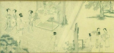 不過(guò),這段帝妃之間的七夕故事確實(shí)有些不同尋常。七夕當(dāng)晚應(yīng)當(dāng)是一派歡樂(lè)景象,但《長(zhǎng)恨歌》偏偏突出此夜的靜謐氛圍,還特意說(shuō)明,他們?cè)诰喗Y(jié)誓言時(shí)絕無(wú)旁人。用七夕節(jié)俗烘托帝妃感情,早有范例,但表現(xiàn)方式卻與此完全相反。托名劉歆的《西京雜記》中便寫到漢高祖與戚夫人過(guò)七夕節(jié)的場(chǎng)景:“至七月七日,臨百子池,作于闐樂(lè)。樂(lè)畢,以五色縷相羈,謂為‘相連愛(ài)’。”臨百子池、奏于闐樂(lè),說(shuō)明這段故事發(fā)生在七夕宮宴之時(shí)。在這個(gè)公開(kāi)場(chǎng)合,將五色絲縷系在二人之間,還給這種節(jié)物起了一個(gè)美麗的名字——“相連愛(ài)”,就是類似“永結(jié)同心”的意思。在節(jié)日?qǐng)龊瞎_(kāi)賜予特殊節(jié)物,歷來(lái)便是帝王家表達(dá)親近恩寵的方式。