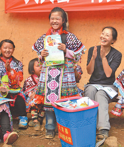常紹慧和同事們?cè)谧咴L時(shí)了解到:村子海拔1500米以上,居住著50多戶人家,村民只能在地勢(shì)稍緩的地方種些玉米、土豆,收下的糧食,需要背著背簍步行到鎮(zhèn)上集市去賣;因?yàn)榇遄硬煌ü?、沒有學(xué)校,村里的孩子們要走到5公里外的學(xué)校去上學(xué)。常紹慧想,能為這里做些什么呢?她和同事一合計(jì),想出一個(gè)方案:“咱們圖書館有很多書呀,可以幫何家坡建一個(gè)‘流動(dòng)圖書館’!”