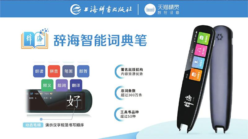 為了更好地適應(yīng)用戶在紙質(zhì)閱讀過程中的快速查檢需求,辭書社經(jīng)過數(shù)年設(shè)計(jì)研發(fā),于2022年9月推出辭海智能詞典筆。詞典筆充分依托聚典平臺(tái)積累的海量?jī)?nèi)容資源,將1.6億字裝進(jìn)一支詞典筆,內(nèi)置詞條達(dá)到了300余萬條,收錄了《辭海》(第七版)和《大辭?!贰稘h語大詞典》《英漢大詞典》《世紀(jì)漢英大詞典》等國(guó)家級(jí)標(biāo)志性工具書,整合《現(xiàn)代漢語大詞典》《現(xiàn)代漢語規(guī)范詞典》《中國(guó)成語大辭典》《同義詞、反義詞大詞典》等精品工具書,讓用戶每次都能夠查有所得。同時(shí),詞典筆實(shí)現(xiàn)掃讀結(jié)果1秒呈現(xiàn),并融合數(shù)字智能技術(shù),集掃描查詢、語音助手、聽力練習(xí)、語音翻譯、口語測(cè)評(píng)、數(shù)碼錄音、生詞本、文本摘抄等八大功能于一體,實(shí)現(xiàn)一筆多用。