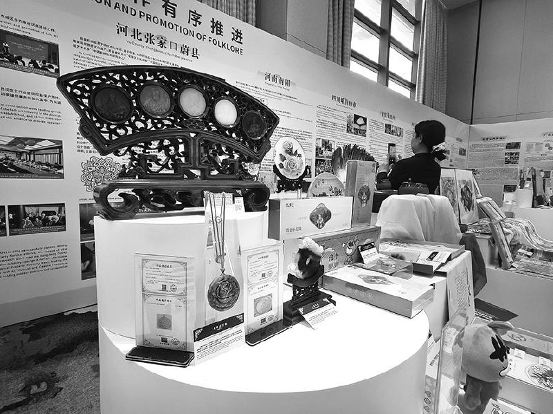 民間文藝版權(quán)保護(hù)與促進(jìn)試點(diǎn)工作推進(jìn)情況展上,河南南陽展位展示了版權(quán)開發(fā)與保護(hù)在玉雕、艾灸產(chǎn)品包裝設(shè)計(jì)、烙畫等方面的應(yīng)用。 本報(bào)記者 隋明照 攝