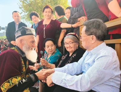 如今,巴彥岱已經(jīng)變成一座新型現(xiàn)代鄉(xiāng)鎮(zhèn)。青楊樹掩映的鄉(xiāng)村道路旁,一幢幢別墅式的民舍邊盛開著玫瑰花,到處可見現(xiàn)代化的學校、體育場、醫(yī)院、展覽館,還有用王蒙《這邊風景》《在伊犁》元素設計成的時尚景觀。人們已經(jīng)把整個村莊變成了“王蒙書院”,變成了王蒙的老家。“這邊風景餐館”“愛彌拉美發(fā)店”“哈麥德游戲廳”“在伊犁超市”等等,走著走著讓人熱淚盈眶。這不是簡單用文學和旅游能解釋的情景,它是一個時代、一個作家與人民共同生活的現(xiàn)場,是王蒙與鄉(xiāng)親們夢與夢的縈繞,心與心的映現(xiàn)。