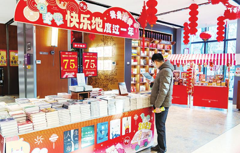 走進甘肅省新華書店西北書城,櫥窗玻璃上貼滿了各式窗花,高高掛起的大紅燈籠和各種喜慶裝飾共同烘托著濃厚的傳統(tǒng)佳節(jié)氛圍。書城工作人員告訴記者,春節(jié)期間的人流量較平時有所增加,大人帶著孩子來選書的也特別多。