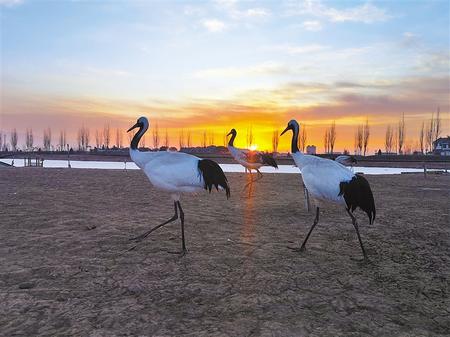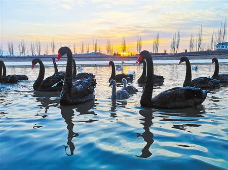 冬日的張掖國(guó)家濕地公園丹頂鶴、黑天鵝、朗德鵝、斑頭雁等沐浴在清晨的陽(yáng)光下。這里良好的生態(tài)環(huán)境吸引了眾多候鳥棲息。通訊員 成 林