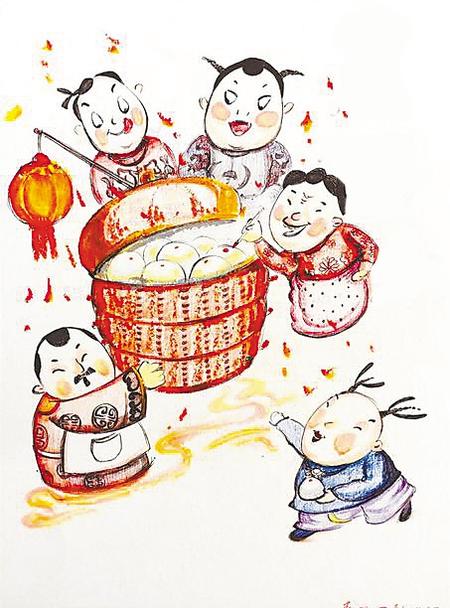 人們辛苦了整整一年,除夕晚上全家老小定要團(tuán)圓,在家中吃團(tuán)圓餃子。餃子形如元寶,取“招財(cái)進(jìn)寶”之意,餃子餡中可以包進(jìn)硬幣和干果,以寄托人們對(duì)新年的一種祈盼。這頓年夜飯可以從傍晚一直吃到天黑,席間人們多彼此祝愿的話語,充滿歡樂溫馨氣氛。