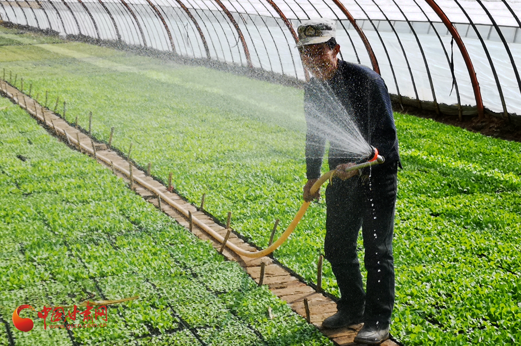 2月25日,位于祁連山下的張掖市甘州區(qū)烏江鎮(zhèn)菜農(nóng)大棚里,萵筍苗和娃娃菜苗青翠欲滴,菜農(nóng)正在忙碌管理,一派春意盎然。