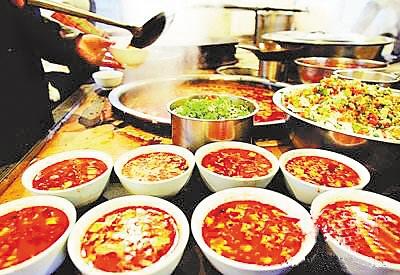 在晾面的時候,主婦開始炒菜,做湯頭。做菜前,先要熟些新鮮的油潑辣子,在辣面中調(diào)入少許精鹽與調(diào)和粉,將熱好的胡麻油“嗞拉”一聲傾入辣子面中,香辣之味頓時充滿一室。然后開始燴菜做湯頭。只見主婦有條不紊地將切好的菜丁逐一擱進(jìn)油鍋里,反復(fù)翻炒,適時放入大香、桂皮、草果、生姜、花椒等制成的混合調(diào)料與精鹽,等香味炒出來了,便漩入提前燒好的開水,火關(guān)小,讓其慢熟。