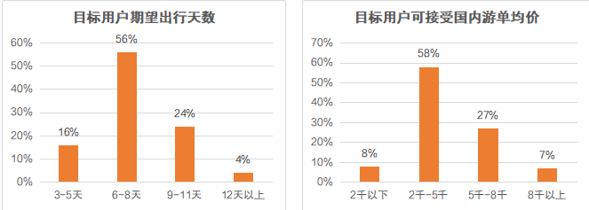 關于出行方式,一部分客戶表示,“現在機票便宜、酒店也不貴,自己訂也挺方便的”;一部分客戶表示,“想去玩的人應該不少,找旅行社安排跟個團,應該能省點心”。從整體數據來看,選擇自由行/半自助游的客戶占比42%,選擇傳統(tǒng)跟團游和私家定制的客戶總和與之持平,總占比46%。