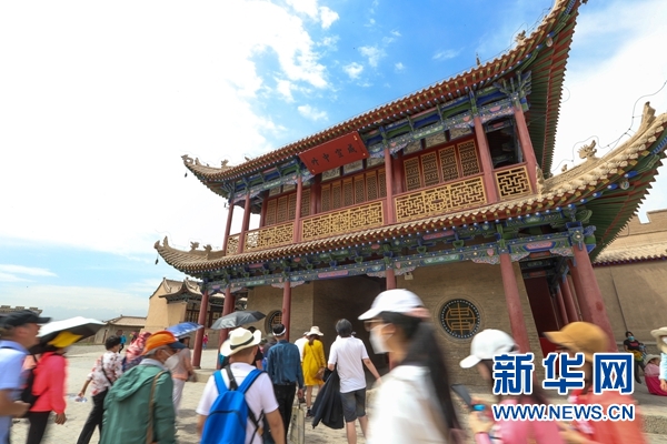 8月10日,游客在嘉峪關(guān)關(guān)城景區(qū)游玩。新華社記者 馬希平 攝