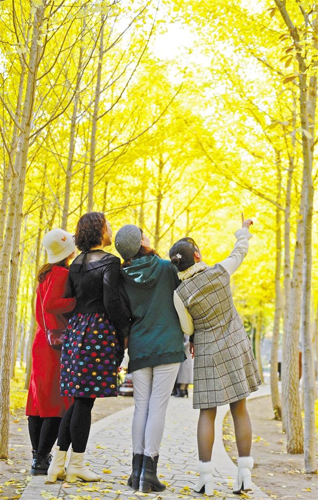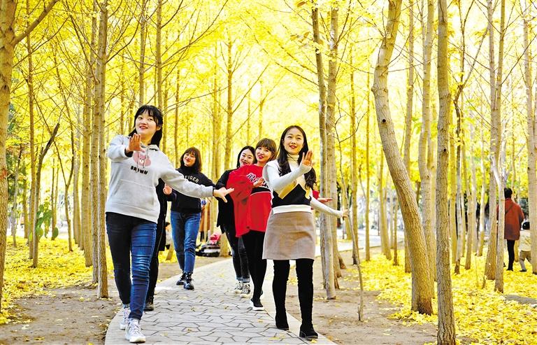 近日,蘭州植物園的銀杏樹金黃一片,吸引眾多市民前去游玩拍照。秋高氣爽,藍天白云下,蘭州植物園內銀杏樹進入最佳觀賞期,猶如披上了“黃金甲”,讓魅力無窮的植物園又添新景,金黃色的銀杏樹在陽光的照射下令人陶醉,成為深秋一道迷人的風景。