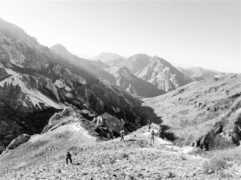 “海拔三千九,人在云里走;不知路多遠(yuǎn),轉(zhuǎn)灣九十九。”這是當(dāng)?shù)厝藢Φ锹豆巧降拿枋?,我們這次在山里徒步約8小時(shí),爬升高度近900米,行程14.5公里,最高處海拔為3850米。