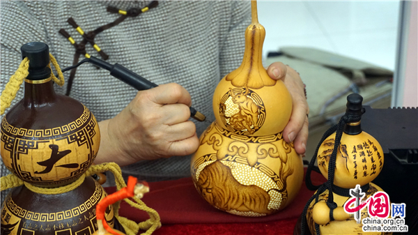 葫蘆烙畫又稱燙畫葫蘆、火筆畫葫蘆,是國家非物質文化遺產(chǎn)。做葫蘆烙畫得用烙鐵當筆,燒熱后在葫蘆表面熨出烙痕作畫。烙畫和葫蘆融為一體,能長久保存,可以作為工藝品收藏。其中,非遺傳承人陶瑞珍的葫蘆烙畫形成了獨特的藝術風格。