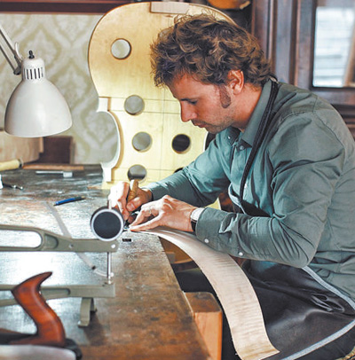 徜徉在克雷莫納街頭,提琴雕塑、制作室櫥窗、小提琴音樂(lè)會(huì)海報(bào)隨處可見(jiàn)。在克雷莫納主教座堂正北側(cè),有一家不大的提琴工作室,店主是33歲的瓦萊里奧·費(fèi)隆。年紀(jì)雖輕,費(fèi)隆已斬獲意大利提琴制作比賽最佳小提琴獎(jiǎng)、中提琴獎(jiǎng)、大提琴獎(jiǎng)等許多獎(jiǎng)項(xiàng)。