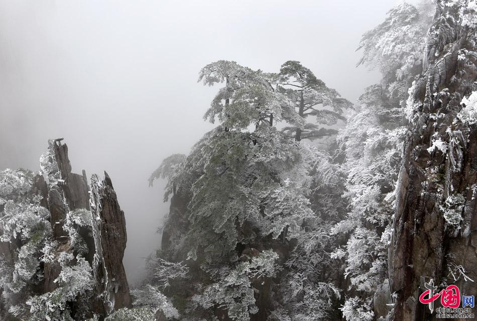 陽春三月黃山風(fēng)景區(qū)出現(xiàn)霧凇奇觀(高清大圖)