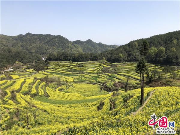 近日,連續(xù)一周的陰雨天氣后,皖南的油菜花花期漸近尾聲。3月22日,黃山旅游直播間趁著春日暖陽,走進(jìn)徽州區(qū)呈坎鎮(zhèn)靈山村,通過直播的方式,帶網(wǎng)友探尋始自明代的一千五百畝油菜花梯田花海。