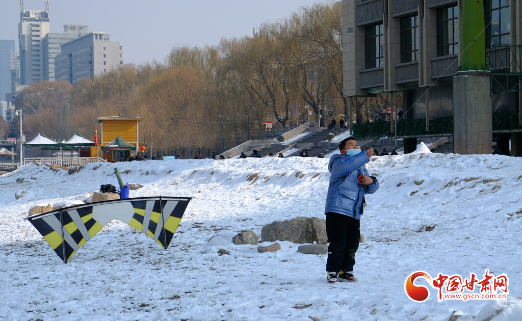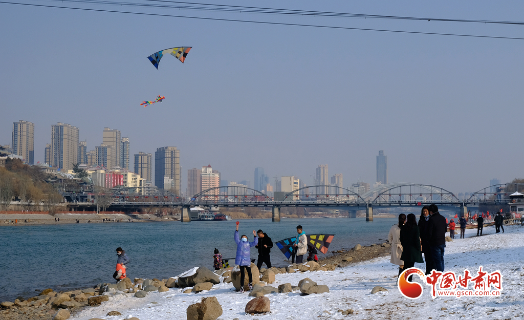 新春佳節(jié),早春時(shí)光,2月7日,雪后天晴,市民走出家門(mén)來(lái)到黃河之濱放風(fēng)箏。