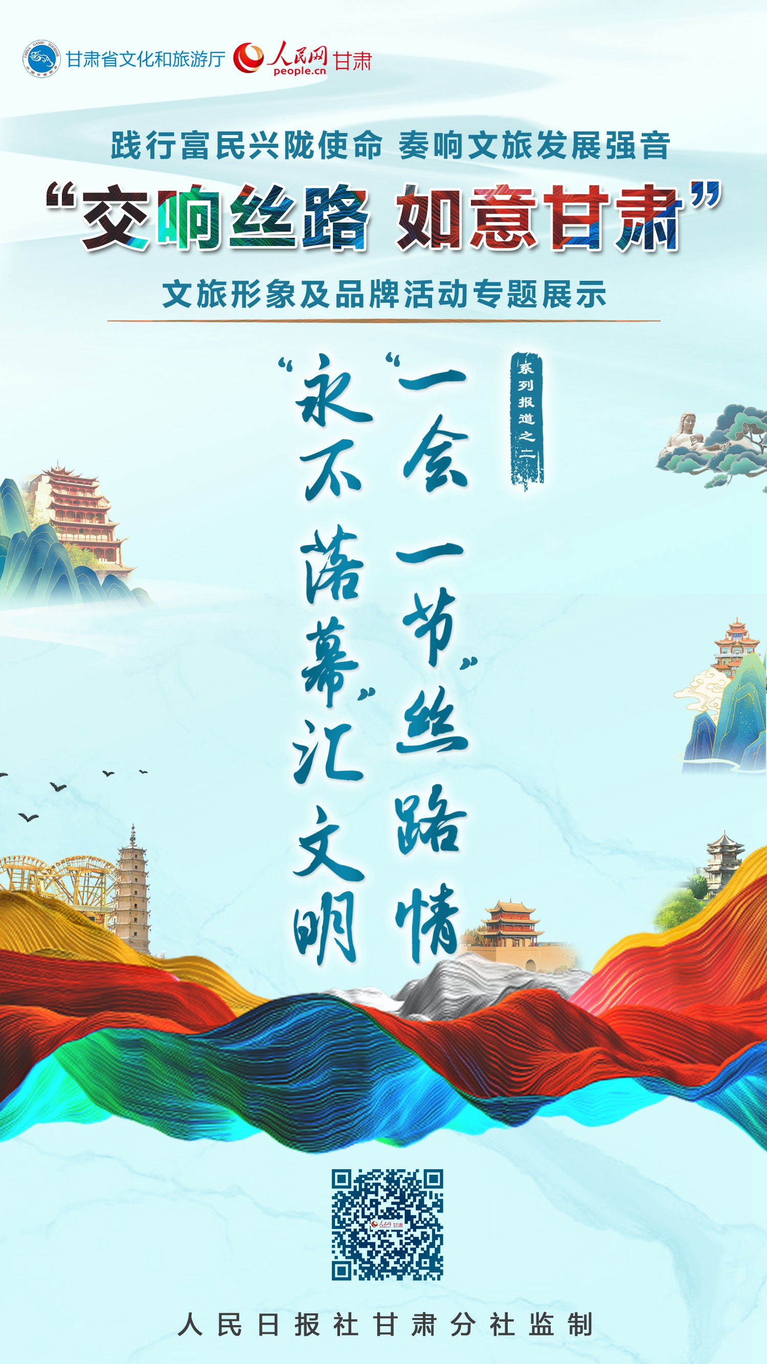 奮進(jìn)新征程,建功新時(shí)代。2022年全國(guó)兩會(huì)精神伴隨浩蕩春風(fēng)傳遍隴原大地。甘肅省文旅廳聯(lián)合人民網(wǎng)甘肅頻道推出“交響絲路·如意甘肅”文旅形象及品牌活動(dòng)線上專題展示,全面展現(xiàn)全省文旅系統(tǒng)將殷殷重托化為實(shí)干擔(dān)當(dāng),熱情講好甘肅故事、大力宣傳推介甘肅的生動(dòng)實(shí)踐和孜孜探索;激勵(lì)隴原兒女更加自信地宣傳甘肅歷史之美、山河之美、文化之美;引導(dǎo)社會(huì)各界人士持續(xù)關(guān)心關(guān)注、支持幫助甘肅文化和旅游業(yè)高質(zhì)量發(fā)展,合力打造文化興、生態(tài)美、百姓富的文化旅游強(qiáng)??!