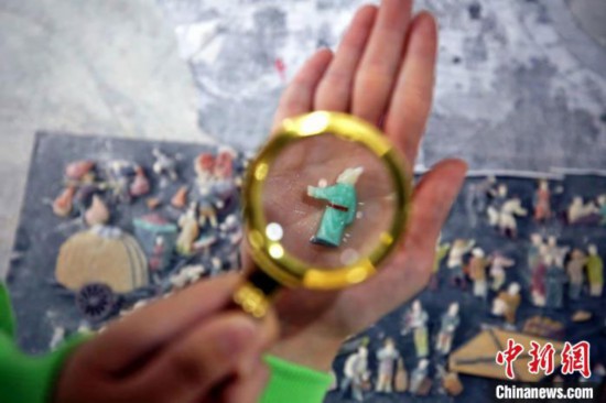 “制作這件彩石鑲嵌作品要有很深的功底,特別是對(duì)人物臉部細(xì)節(jié)的處理,要想做到3000多個(gè)人物神態(tài)逼真,難度非常大。”李成者說(shuō),有的人物只有米粒大小,要拿著放大鏡雕刻,對(duì)師傅的手藝要求非常高。