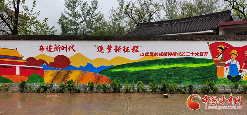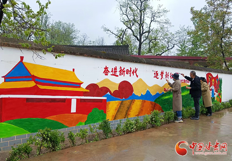 中國甘肅網(wǎng)4月21日訊(本網(wǎng)記者 李紅軍)4月19日,記者走進(jìn)風(fēng)景如畫的成縣陳院鎮(zhèn),發(fā)現(xiàn)一群人揮舞著手中的“畫筆”,在村莊潔白的墻壁上,勾勒線條、填充顏色,一幅構(gòu)思巧妙、色彩絢麗、栩栩如生的墻體彩繪作品讓一面面白墻“活”了起來,村莊環(huán)境更顯生動活潑。