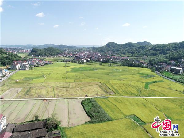 湖南新邵:早稻進(jìn)入全面收割階段 田園如詩(shī)如畫