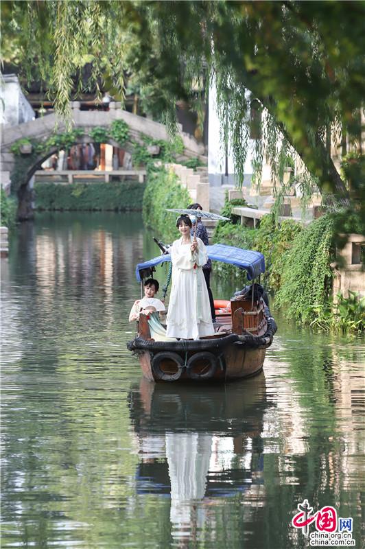 夏日遲遲至,古鎮(zhèn)緩緩行。坐一趟手搖船,穿行在23°的水巷,看陽光透過樹影落在水面上的斑駁,聽搖櫓聲聲撥動碧水的悠然,悄然經(jīng)過匆匆那年。赴一場紙箱王之約,穿梭在紙藝王國,吃一頓盈滿時光的紙上美食。坐上紙做的小火車放飛夢想,在紙箱王古郵局描繪出未來的藍(lán)圖。行走在貞豐文化街上,看貞豐十二坊的匠人匠心,觀水鄉(xiāng)周莊的人間煙火。走累了便去蘇繡藝舍感受蘇繡的獨特魅力,到爐韻沉香研習(xí)香道茶藝……一盞清茶一爐香,一衣帶水歸故鄉(xiāng)。