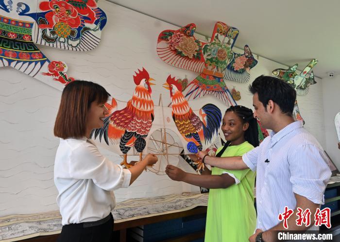 中新網(wǎng)廊坊7月21日電 (李玉素 宋敏濤)21日,來自河北師范大學(xué)的尼日利亞籍留學(xué)生馬臻和巴基斯坦籍留學(xué)生烏瑪爾,來到河北省廊坊市安次區(qū)第什里風(fēng)箏小鎮(zhèn),體驗中國傳統(tǒng)的風(fēng)箏文化。