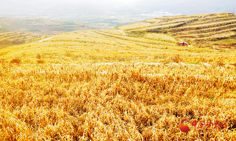 “看著金黃的谷田和一個個沉甸甸的谷穗,心里別提有多高興和踏實了。”看著傾注了自己一年心血和汗水的谷子喜獲豐收,村黨支部書記荊小軍臉上掛滿豐收的喜悅。