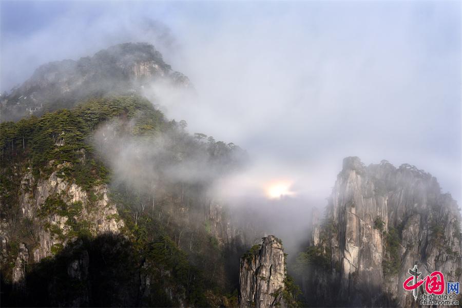黃山云海佛光霞光齊現(xiàn) 勾勒一幅幅獨有的勝景