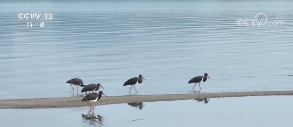 據了解,黑鸛對于棲息地很挑剔,要求水體食物必須豐富,水質必須清澈。它們的到來是長江江域生態(tài)改善的生動見證。