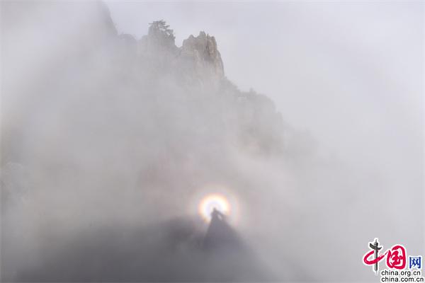 原標題:安徽黃山:云海和佛光演變如夢如幻意境