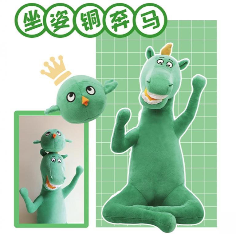 銅奔馬毛絨玩具有“一馬當(dāng)先銅奔馬”站姿款和“馬到成功銅奔馬”奔跑款兩種款式。兩款玩偶形象萌趣立體,表情俏皮生動,做工精致細膩,手感柔軟舒適有彈性,深得大家喜愛。它的創(chuàng)意原型來自甘肅省博物館的鎮(zhèn)館之寶——銅奔馬。銅奔馬出土于甘肅省武威市雷臺漢墓,距今已有2000多年的歷史,是中國旅游標志物,也是古絲綢之路最具代表性的歷史文物載體。