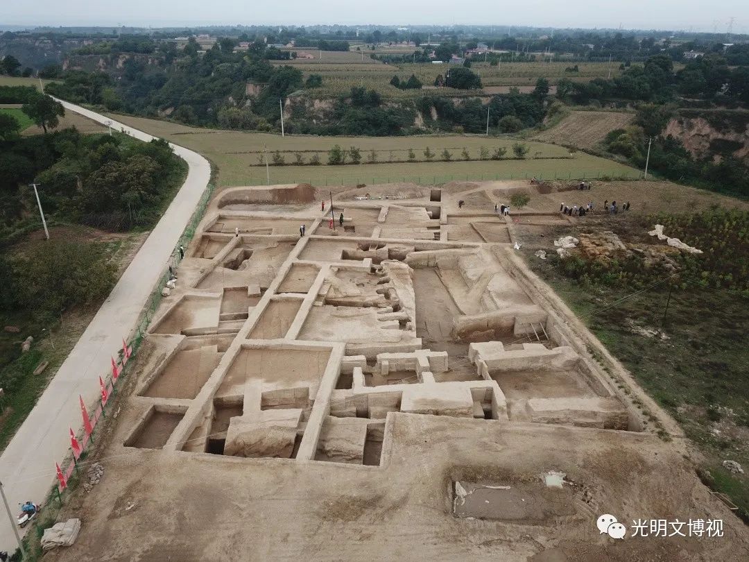 甘肅慶陽西峰西郊的南佐遺址,坐落在黃土高原第一大塬——董志塬上,傳說中這里是黃帝部族的重要活動地域,也是以農(nóng)業(yè)著稱的周人祖先不窋?shù)睦霞?。南佐遺址發(fā)現(xiàn)于1958年,1984—1986年和1994—1996年有過兩個階段的發(fā)掘,從2021年開始第三階段的發(fā)掘和調(diào)查、勘探工作,基本確認(rèn)這是一處以仰韶文化晚期大型聚落為主體的遺址,遺址面積在600萬平方米以上,可能有外環(huán)壕。聚落中部是由9座方形夯土臺及其環(huán)壕圍成的面積約30萬平方米的核心區(qū),核心區(qū)中部偏北是數(shù)千平方米的由“護城河”和夯土宮墻圍成的“宮城”。“宮城”中心為主殿,“九臺”之外還有多處居住區(qū)、夯土臺、溝渠水利設(shè)施等遺存,出土了大量白陶、黑陶等珍貴遺物和大量水稻,從多個方面顯現(xiàn)出早期國家和文明社會的氣象。