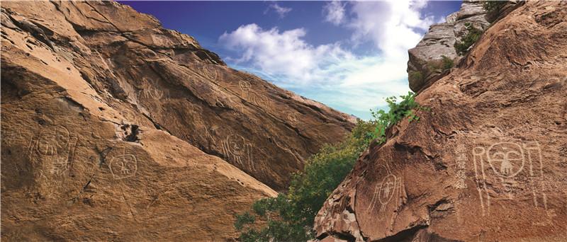 寧夏巖畫以賀蘭山巖畫為代表,鑿刻年代從石器時代到歷史發(fā)展的各個階段,延續(xù)時間長,體現(xiàn)了古人與石的對話,被譽為“史前人類的藝術(shù)長廊”“刻在石頭上的史詩”。寧夏巖畫為中國北方巖畫的代表,約有4萬余幅,廣泛分布于賀蘭山東麓和衛(wèi)寧北山、香山、青銅峽牛首山,記錄了遠(yuǎn)古先民狩獵、耕作、放牧、祭祀、圖騰等生產(chǎn)生活場景。北魏地理學(xué)家酈道元對賀蘭山巖畫描述“石之上自然有紋,盡若虎馬之狀,粲然成著,類似圖焉,故亦謂之畫石山也。”寧夏巖畫是多彩的畫,是無聲的歌,是無韻的詩,是形象的史,承載著古代賀蘭山區(qū)多民族交往交流交融的集體記憶,是各民族從“各美其美、美美與共”到“多元一體、休戚與共”的中華民族共同體意識的原始物證?,F(xiàn)為國家4A級旅游景區(qū)。
