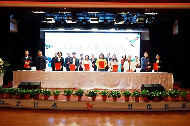 專題推介會(huì)上,由慶陽(yáng)市文體廣電和旅游局黨組書記、局長(zhǎng)郭麗君全面推介了慶陽(yáng)文化旅游資源,慶陽(yáng)旅游百事通國(guó)際旅行社總經(jīng)理毛永吉重點(diǎn)推介了慶陽(yáng)旅游精品線路;重慶山水國(guó)旅、陜西中國(guó)旅行社等川、渝、陜、青、寧等?。▍^(qū)、市)旅行社與慶陽(yáng)公共交通集團(tuán)旅行社、慶陽(yáng)文化旅游投資集團(tuán)北豳風(fēng)旅行社等20家旅行社,相互簽訂了“引客入甘肅游慶陽(yáng)”客源輸送及慶陽(yáng)旅游產(chǎn)品聯(lián)合開發(fā)合作協(xié)議。推介環(huán)節(jié)還組織進(jìn)行了嗩吶演奏《沸騰的黃土地》、慶陽(yáng)民歌《送吉祥》、南梁說(shuō)唱傳統(tǒng)劇目《紅鳳先下山》以及民歌聯(lián)唱等極富隴東特色的文藝表演。推介會(huì)前,與會(huì)嘉賓還一起觀看了慶陽(yáng)文旅形象及招商項(xiàng)目圖片展、非遺文創(chuàng)產(chǎn)品展。甘肅省文旅廳有關(guān)處室和省內(nèi)外旅行商、文旅企業(yè)、媒體記者代表,慶城縣政府、慶陽(yáng)市重點(diǎn)景區(qū)、文旅企業(yè)等相關(guān)負(fù)責(zé)人共150余人參加。