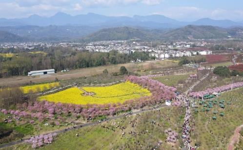 這是3月8日拍攝的都江堰市青城山鎮(zhèn)“問花村”景色(無人機照片)