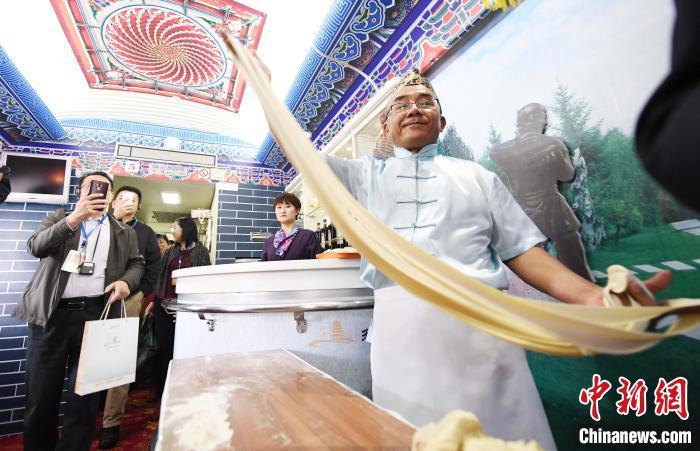2018年4月,蘭州牛肉拉面等地方特色文化登上“環(huán)西部火車(chē)游”,旅客可以在旅途中欣賞牛肉拉面表演。(資料圖)楊艷敏 攝