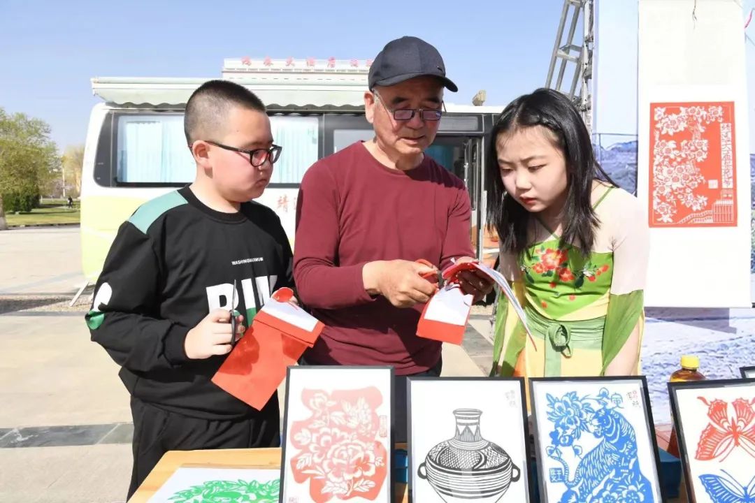 市級非遺保護傳承項目靖遠剪紙傳承人王世義正在教小學(xué)生剪紙。喬麗霞 攝