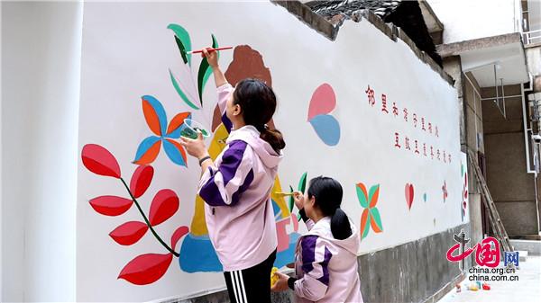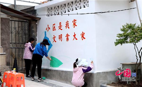 現(xiàn)場,大家手持畫筆和顏料板,相互分工協(xié)作,以墻為紙,認(rèn)真細(xì)致的設(shè)計墻繪內(nèi)容,筆起筆落間,一幅幅栩栩如生、色彩絢麗的城市文明新畫卷躍然墻上。