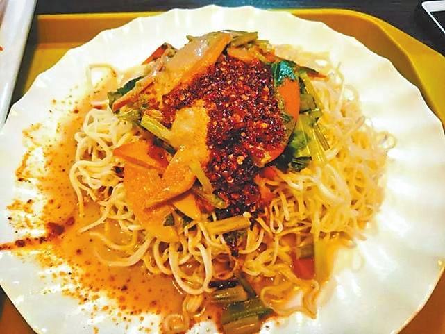 一碗標準的涼州涼面,必須是滿滿一碗,總要冒高點才夠分量。鹵汁分葷、素兩種。鹵子里有豬肉抑或牛肉片、土豆塊、豆腐、豆角、胡蘿卜、干白菜等,攪兩筷子,每一根面條都蘸上了鹵汁的感覺,看起來就非常有食欲。食客們埋頭呼嚕呼嚕開吃,相當過癮。雖然面是涼的,但鹵是熱的,完全不需要擔心會燙嘴,面條很筋道,味道很濃郁!傳說左宗棠多年征戰(zhàn),戰(zhàn)事吃緊,為解決將士吃飯方便的問題,便想出冷面熱鹵的方法。吃涼州涼面,吃的是一種酸辣風味,更是一種對小城難以割舍的情愫。