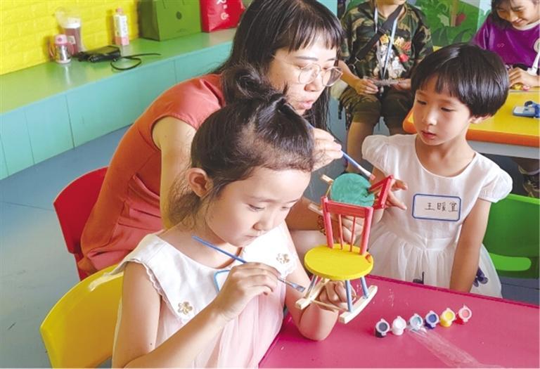 為了讓孩子們切身體驗魯班的精湛技藝,在手工制作環(huán)節(jié),大家進行了榫卯結(jié)構(gòu)的椅子模型拼裝。在主持人的帶領指導下,孩子們將椅背、椅腿按照凹槽精準嵌入,并為其染上五彩底色、繪制精美圖案,一個個“小工匠們”便歡天喜地地完成了自己的手工作品。