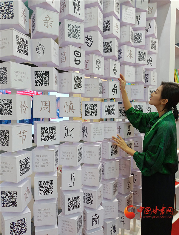 中國甘肅網(wǎng)9月22日訊(西北角·中國甘肅網(wǎng)記者 宋芳科 馮睿棟)中國文字,東方表達(dá)。漢字是我們的文化符號(hào),從甲骨文到金文到篆書、楷書,一步步走來見證著中華的文明文脈。山東作為孔孟之鄉(xiāng),禮儀之邦,出版業(yè)亦重視傳統(tǒng)文化傳承。此次山東展團(tuán)來敦煌參加第十三屆中國數(shù)字出版博覽會(huì),帶來了《中國人 中國字》系列書籍和相關(guān)的文創(chuàng)衍生產(chǎn)品,盡顯中華文字之美,寓意之妙。