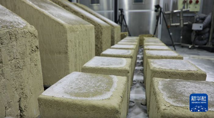 這是9月11日在敦煌研究院國家古代壁畫與土遺址保護多場耦合環(huán)境模擬實驗室冬季倉拍攝的正在試驗中的土遺址監(jiān)測樣品。新華社記者 張智敏 攝