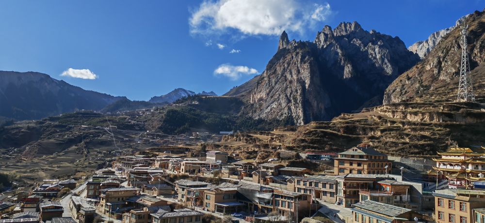 雪后初霽,群山環(huán)抱的扎尕那半隱在繚繞云霧中。一排排榻板房隱匿其間,錯落有致。正值深冬,這里的村民們?nèi)蚤e不?。捍罱ㄐ聵?、翻修舊房、鋪設(shè)步道,準備迎接新一年的旅游旺季。