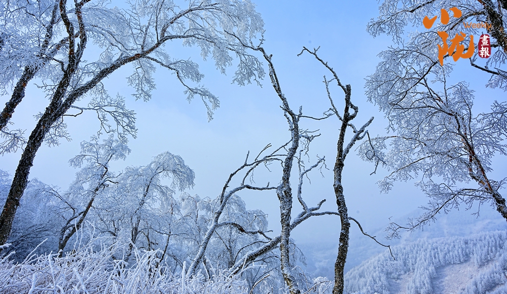 關(guān)山被白雪覆蓋,滿山樹木掛滿了晶瑩的雪花,好像穿上了潔白的婚紗,格外美麗。